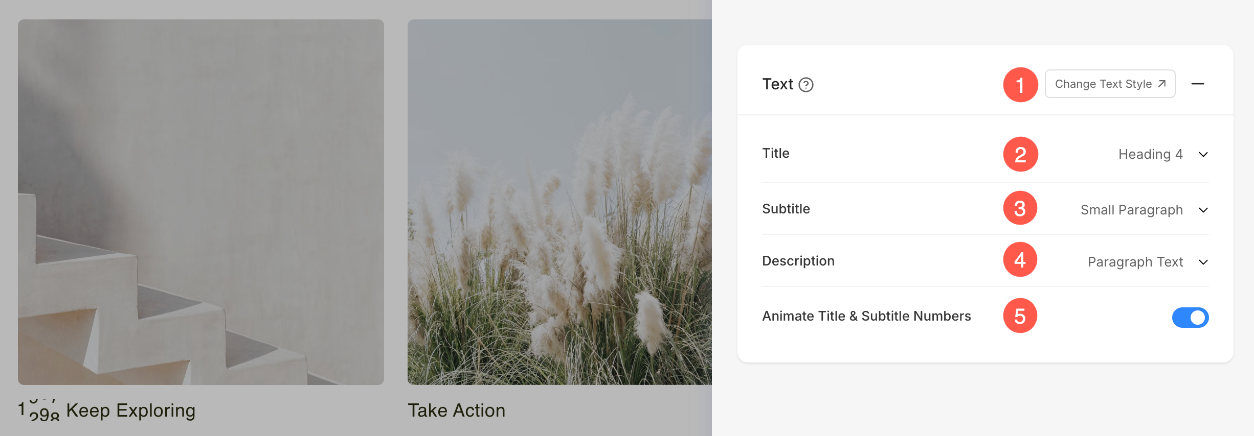 - Enable this option to animate any numbers present in the Title and Subtitle fields. When turned on, numeric values will appear with a dynamic counting animation, making them more visually engaging.