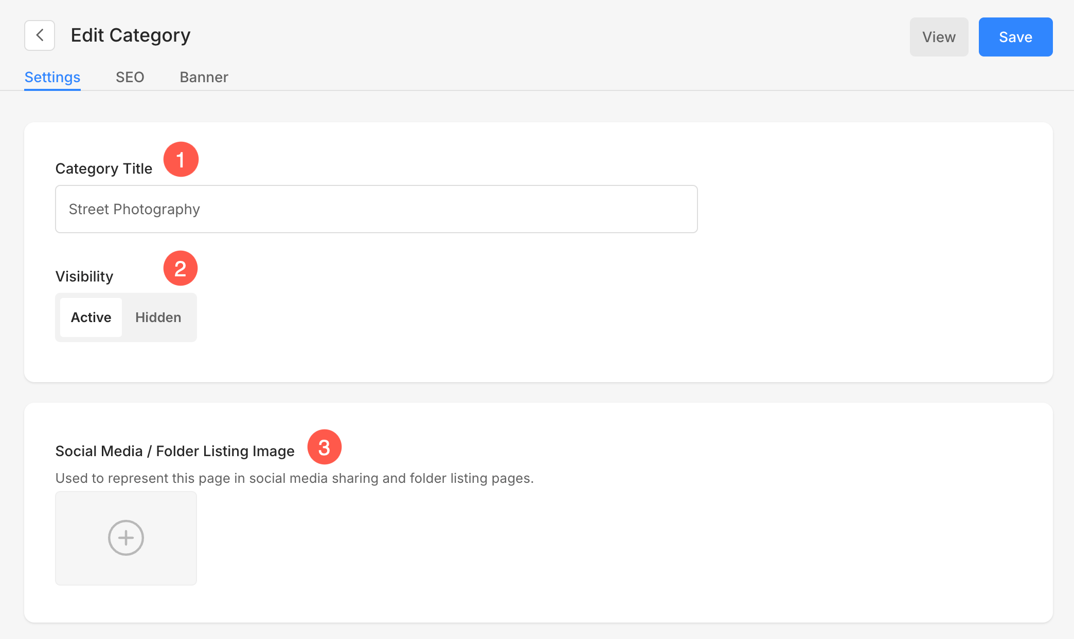 - Social Media / Folder Listing Image – You can upload an image here that represents the blog category when shared on social media or displayed in folder listing pages. This helps enhance visual branding and user engagement across platforms.