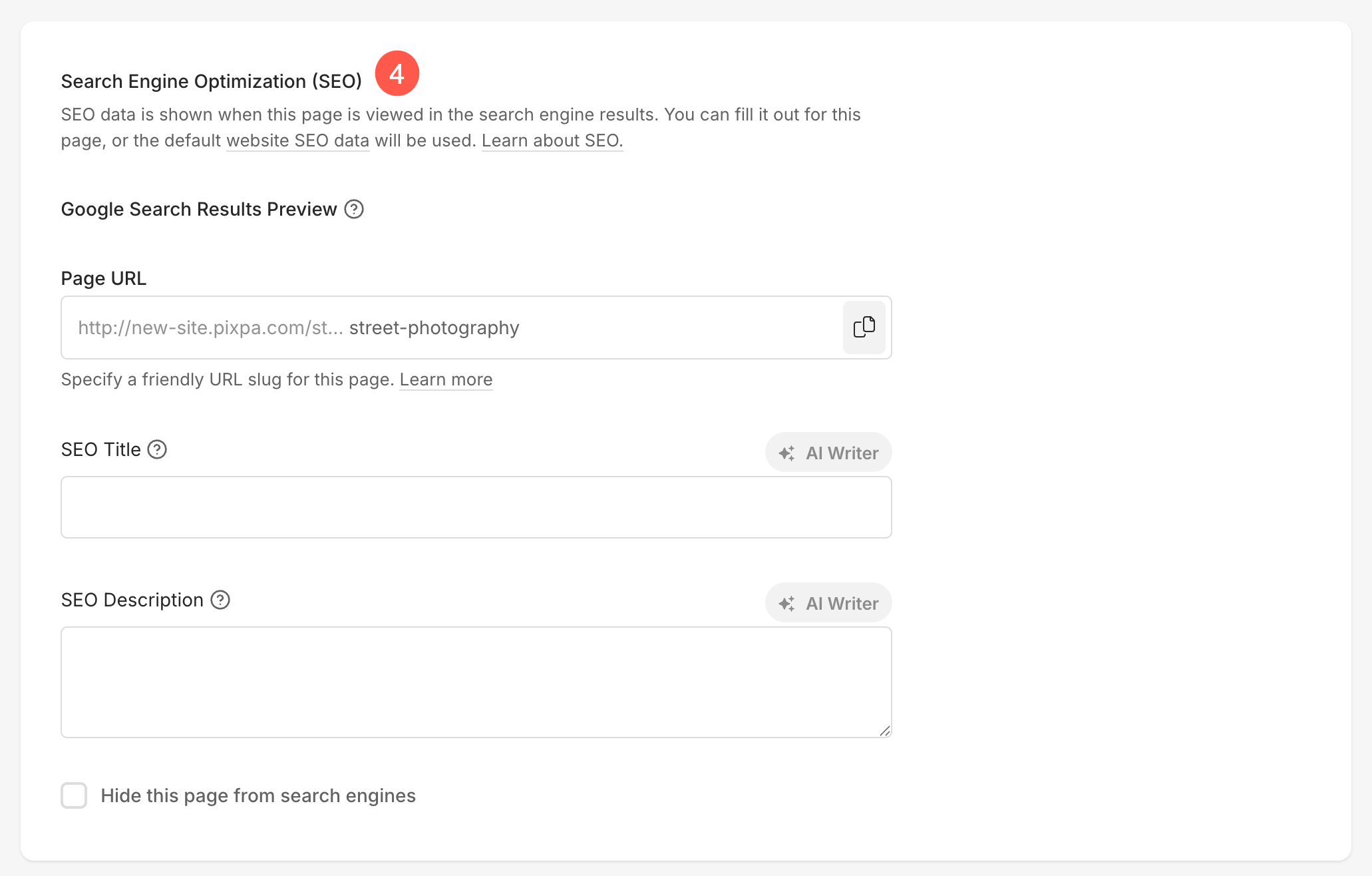 Also See: Add SEO metadata for your website, gallery, and page