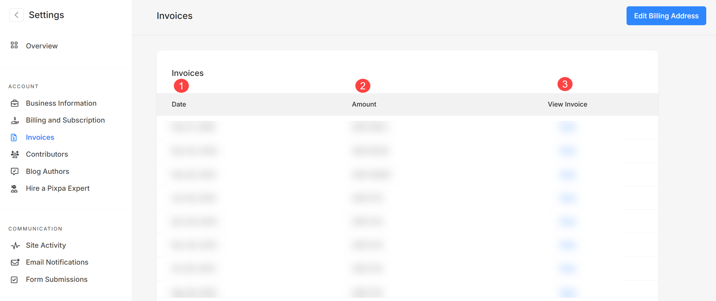 Pixpa allows you to review and download your subscription invoices from the studio.