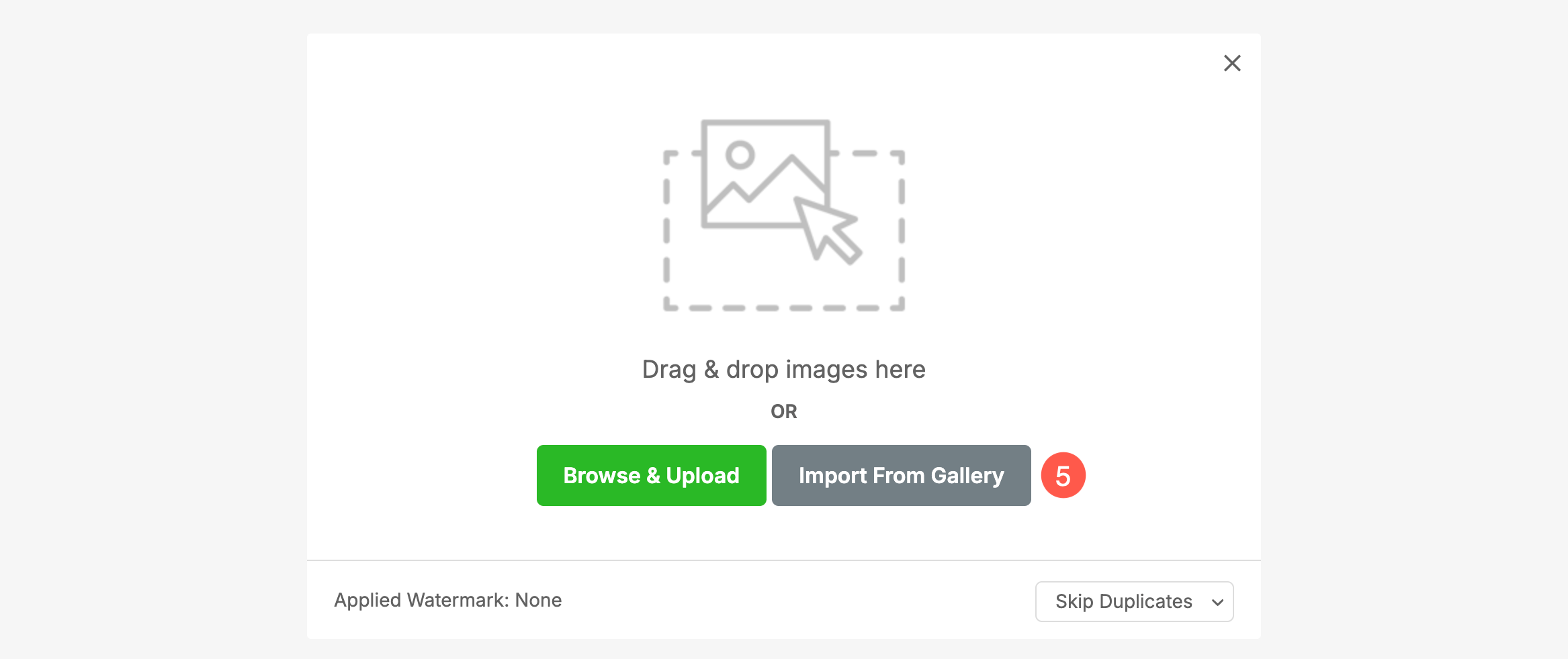 - A new window will open from where you can select whether you want to import the images from Website Gallery or Gallery App (6).