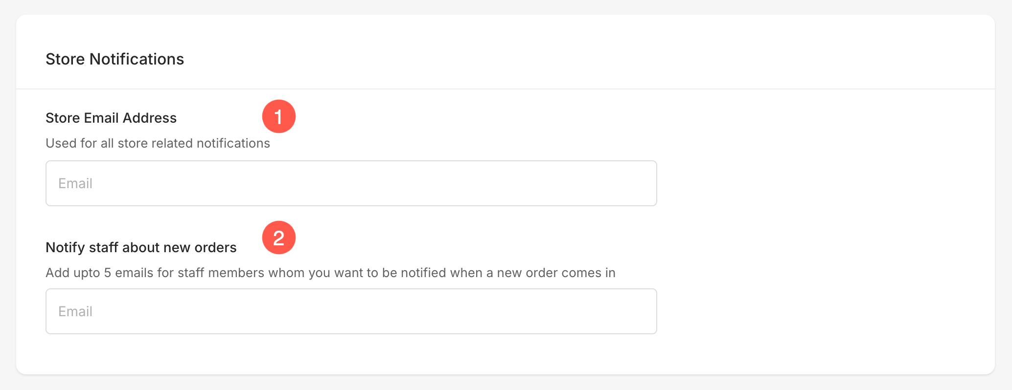 Typically it would be your registered account email ID. You can easily change it if you want to send order-related information to some other email ID. - Notify staff about new orders – You can add two email IDs of your staff here. When any new order is received, these email IDs will also be notified along with the store email address.