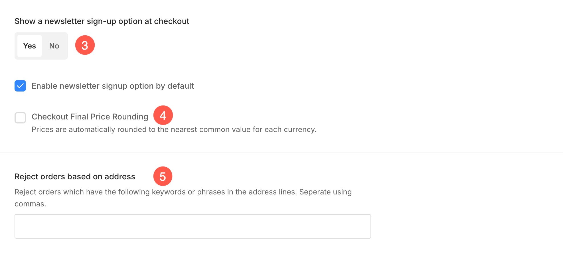 - Show a newsletter sign-up option at checkout – You can choose to show the newsletter sign-up option at checkout.