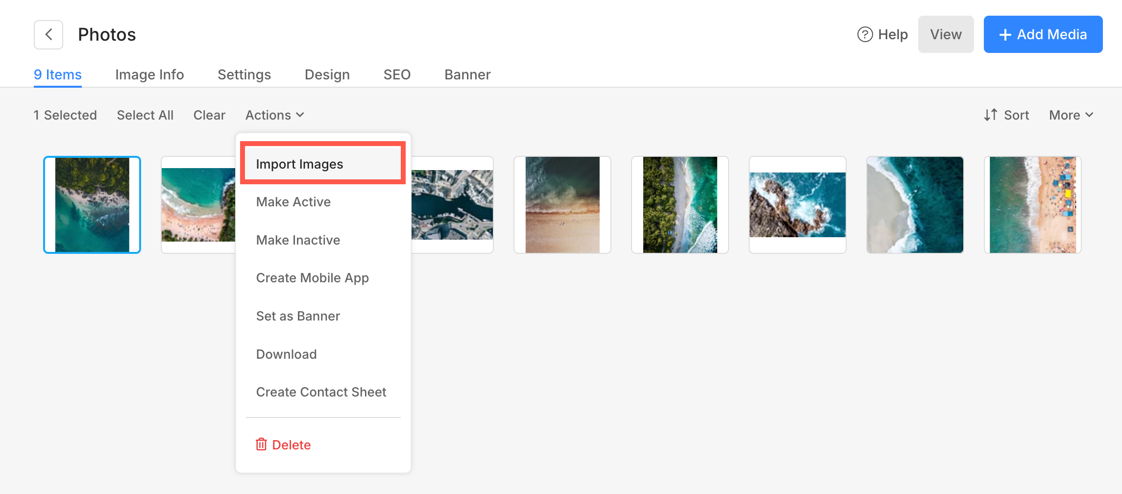 - After selecting the images, click on the Actions, then click on the Set as Banner.