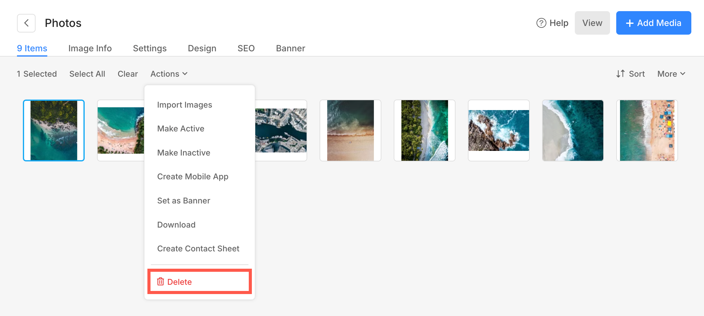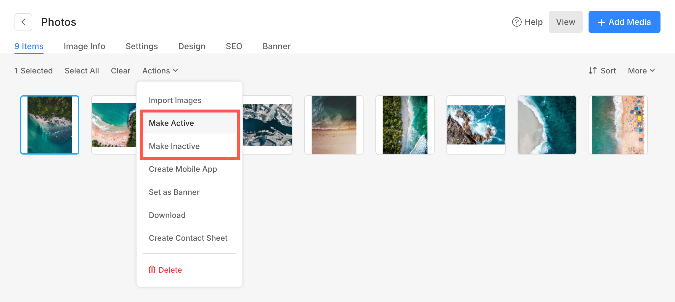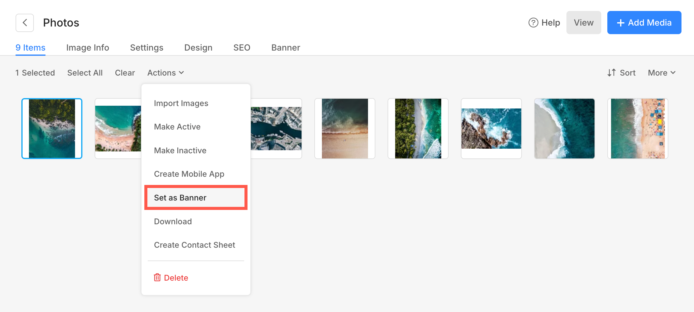 - You can directly create a Banner for a Gallery with selected Images using the Set as a Banner option.