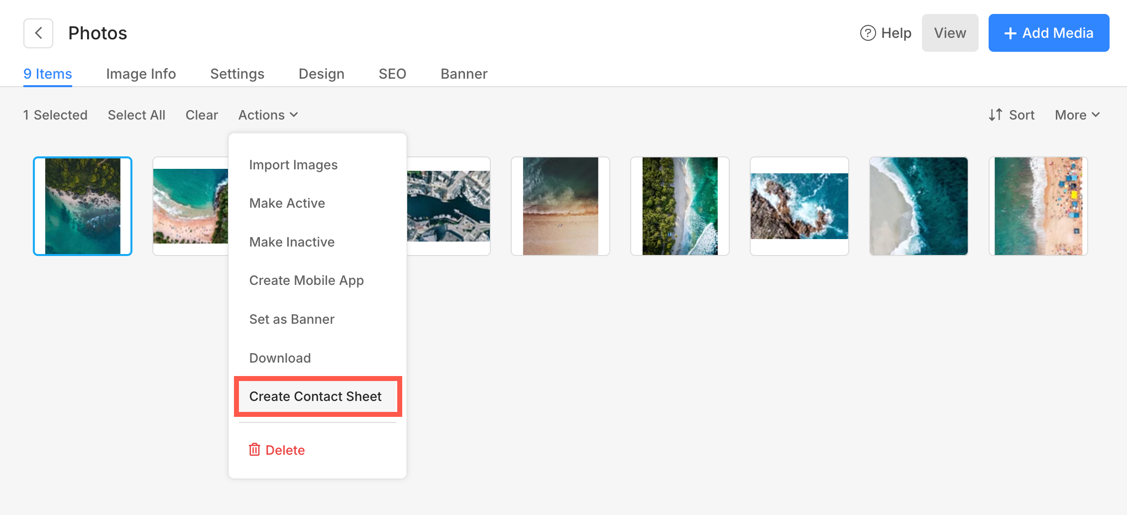 - You can create a Contact Sheet (PDF) of all the selected Images.