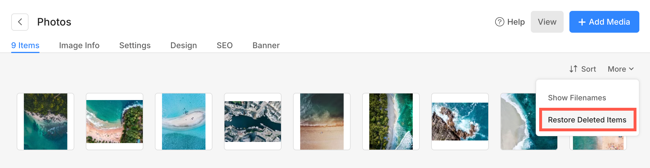- You can now restore the deleted items of a Gallery. Just click on the More tab, and then click on the Restore Deleted Items button.