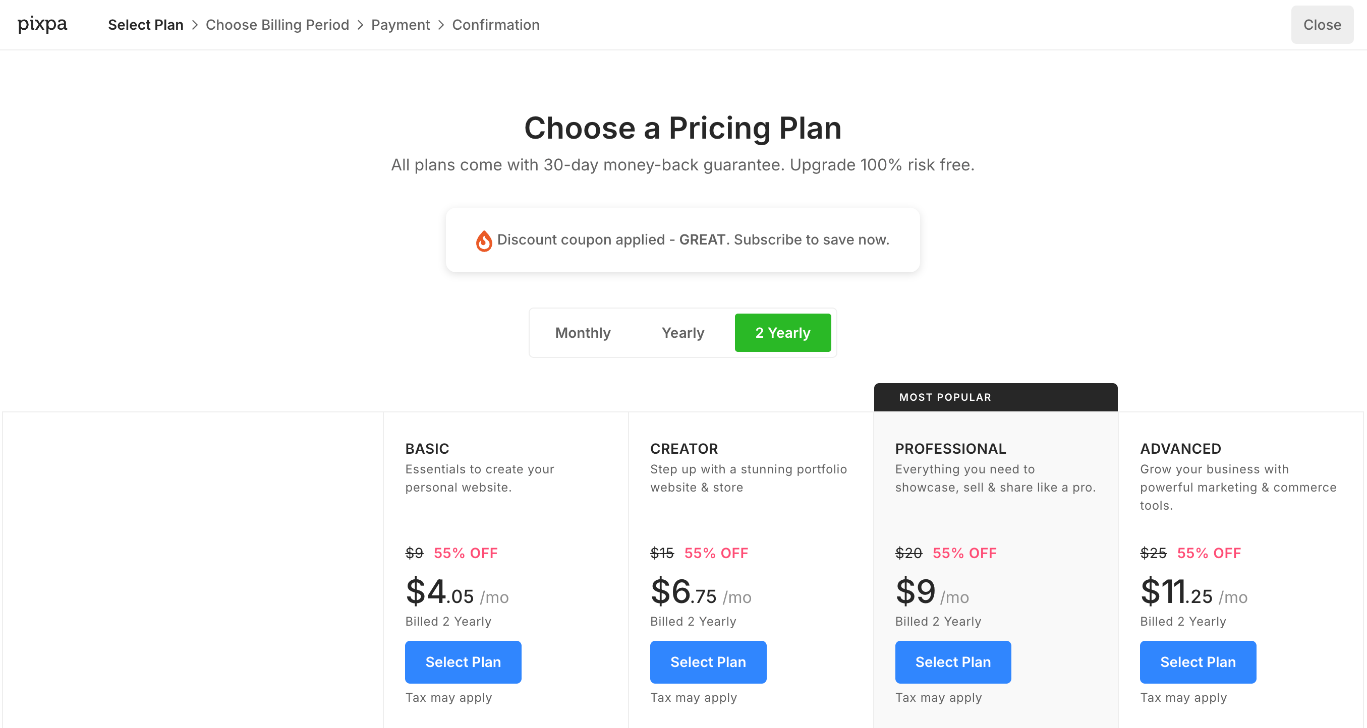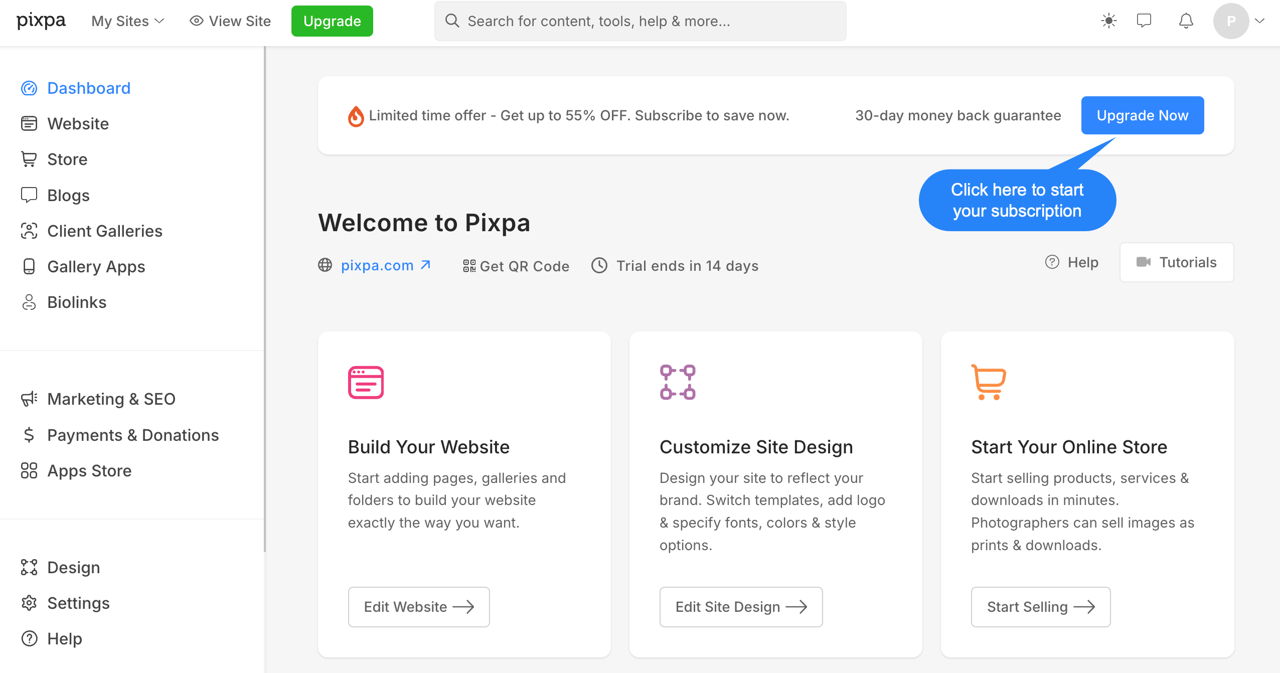 Pixpa offers a 15-day free trial for you to try out our website builder platform. You can explore Pixpa, ask us any questions and start building your website during this trial period.