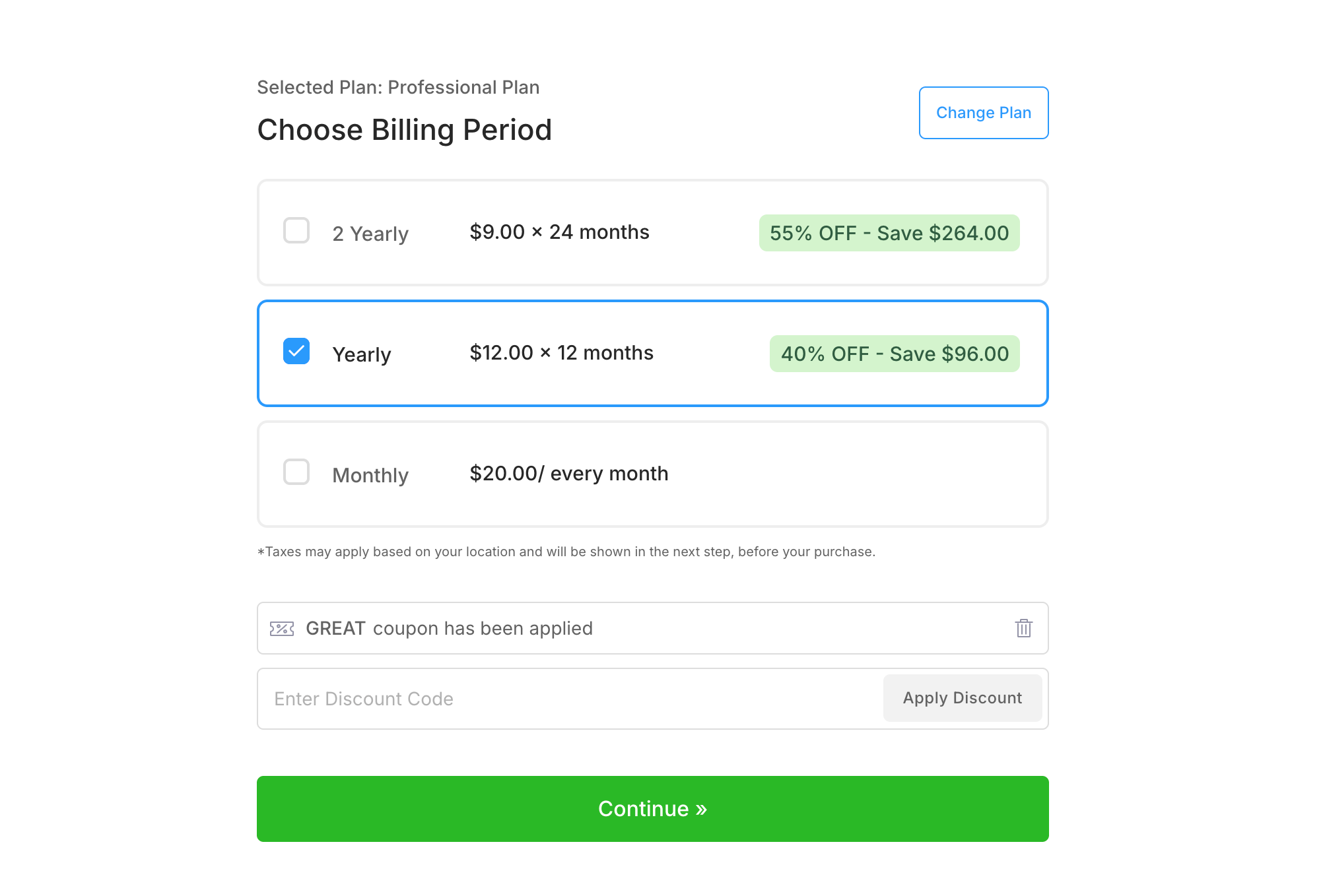 - On clicking the Select Plan button, you would see a popup where you can select the subscription cycle i.e. Monthly and Annually.