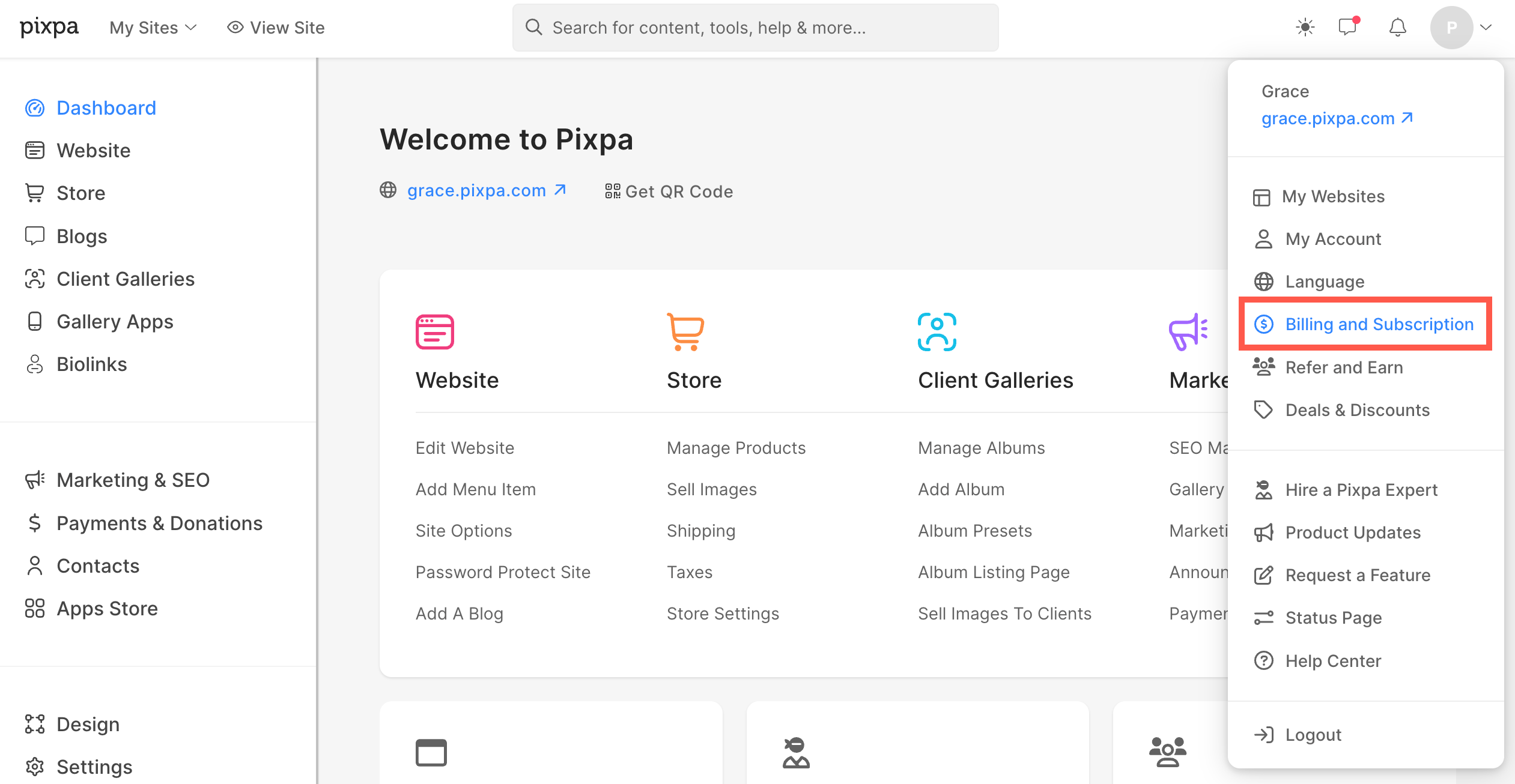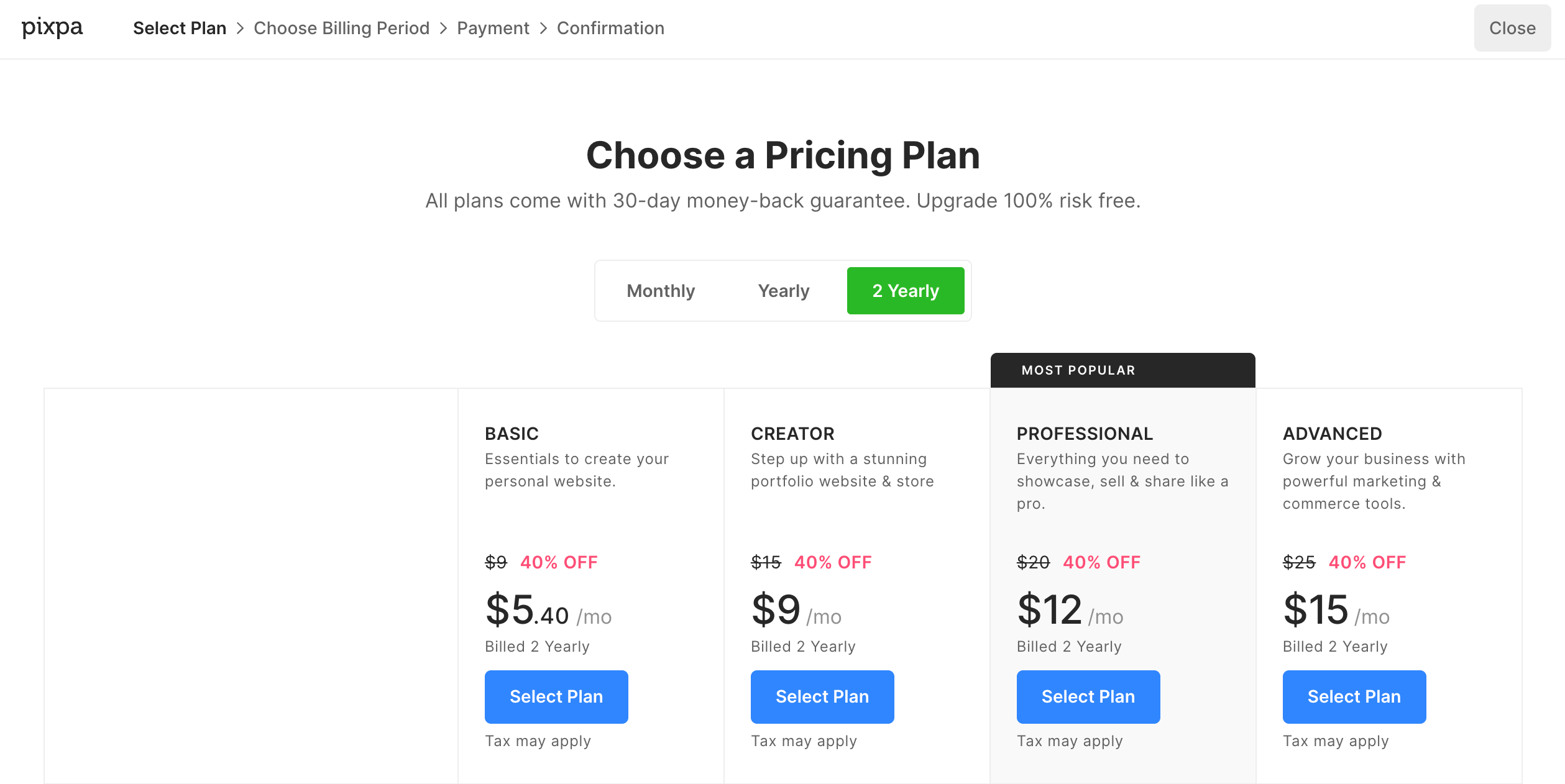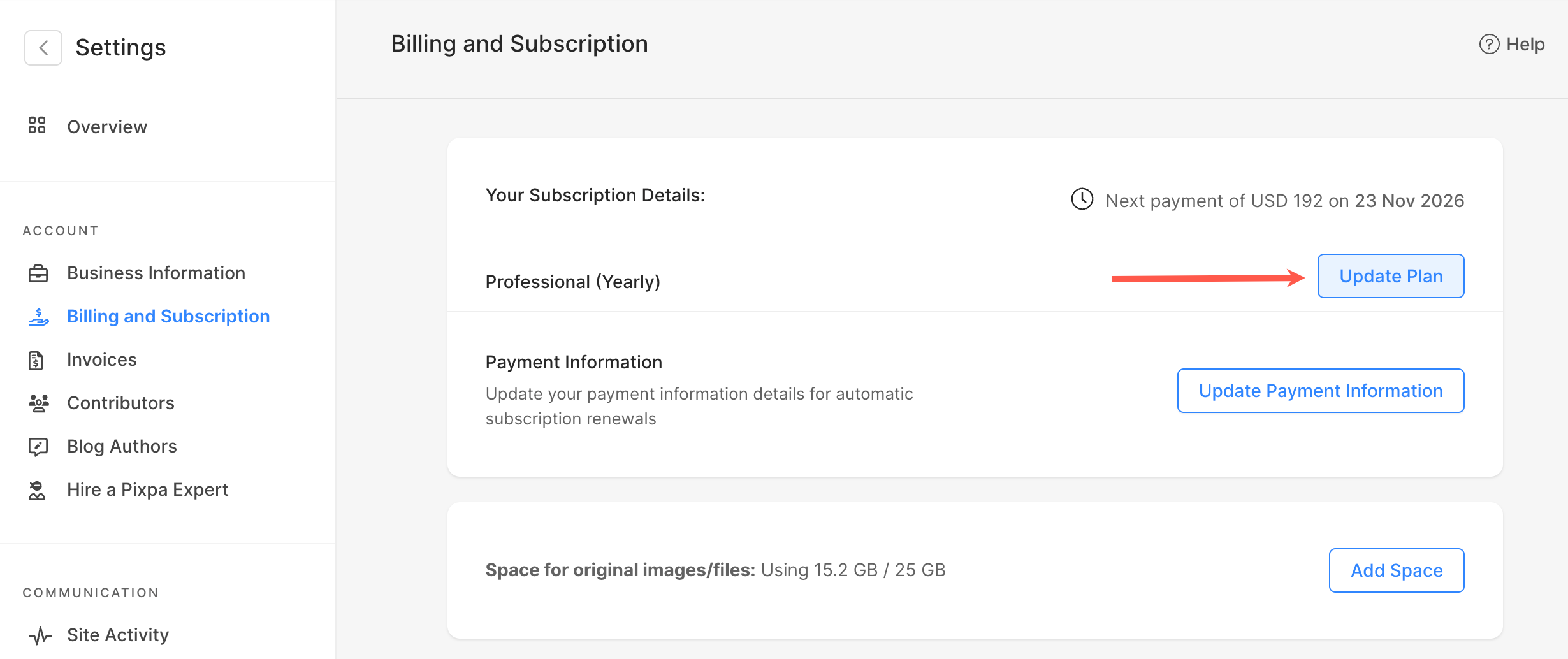 언제든지 Pixpa 구독 플랜을 업그레이드하거나 다운그레이드할 수 있습니다. 새 요금제에 따라 일할 계산된 금액이 청구되거나 환불됩니다.