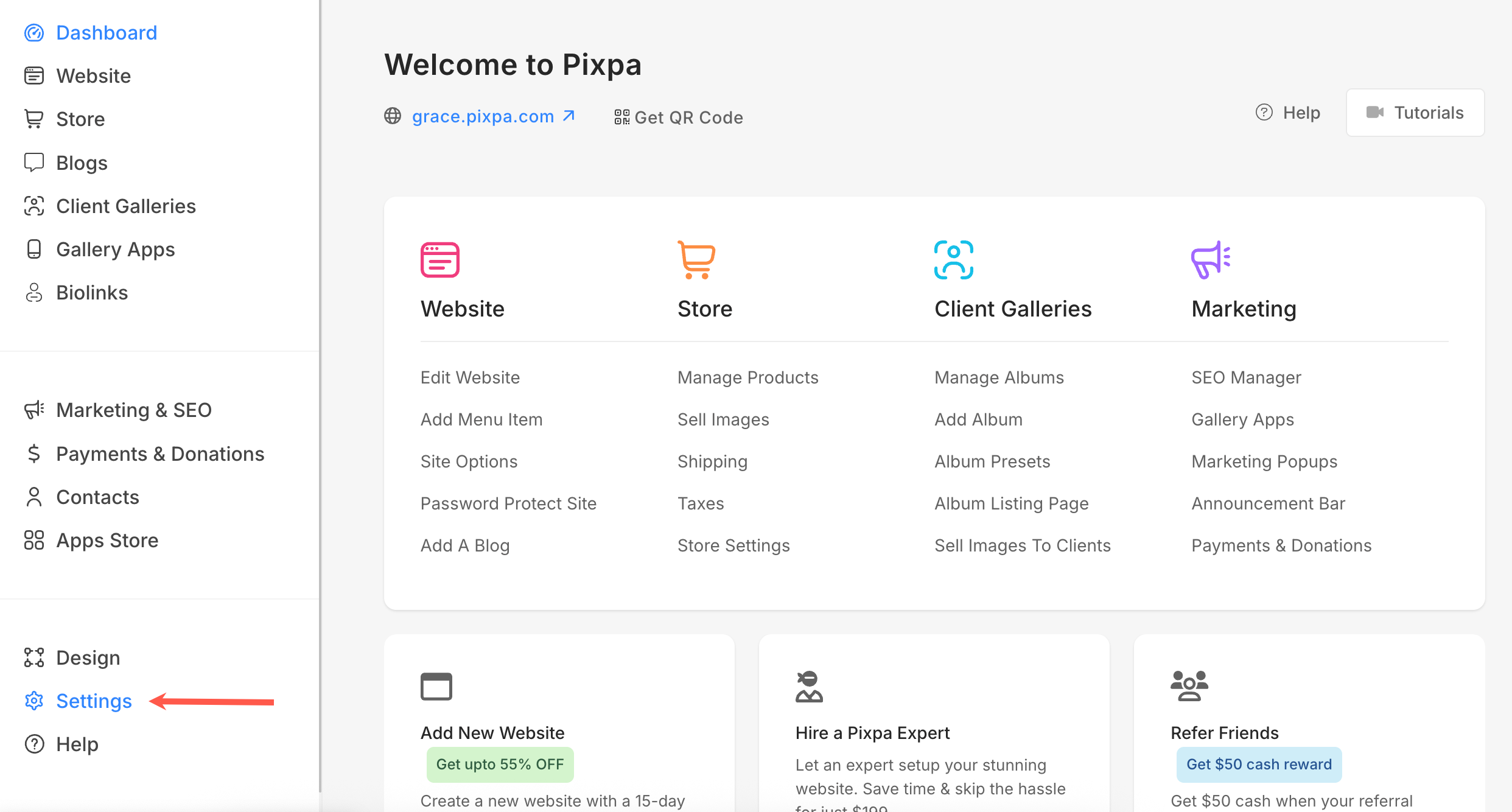- Login til Pixpa studio.